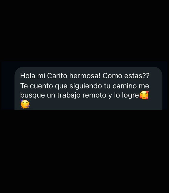 "La mentoría con Caro fue clave para tener claridad del paso a paso que debía seguir para cumplir mi sueño de trabajar desde casa"