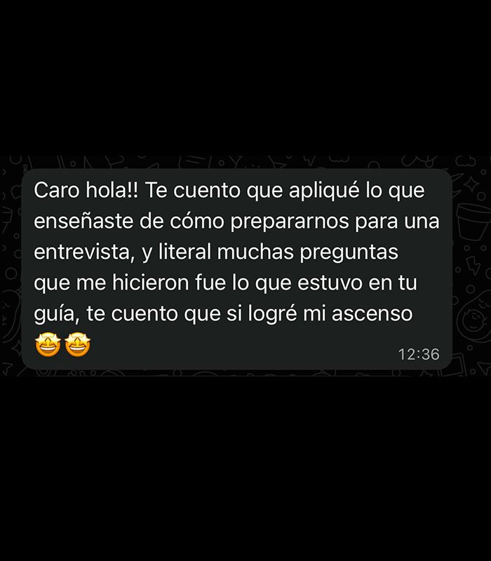 "Caro me asesoró para prepararme para mis entrevistas y gracias a eso pasé todos los filtros para un ascenso"